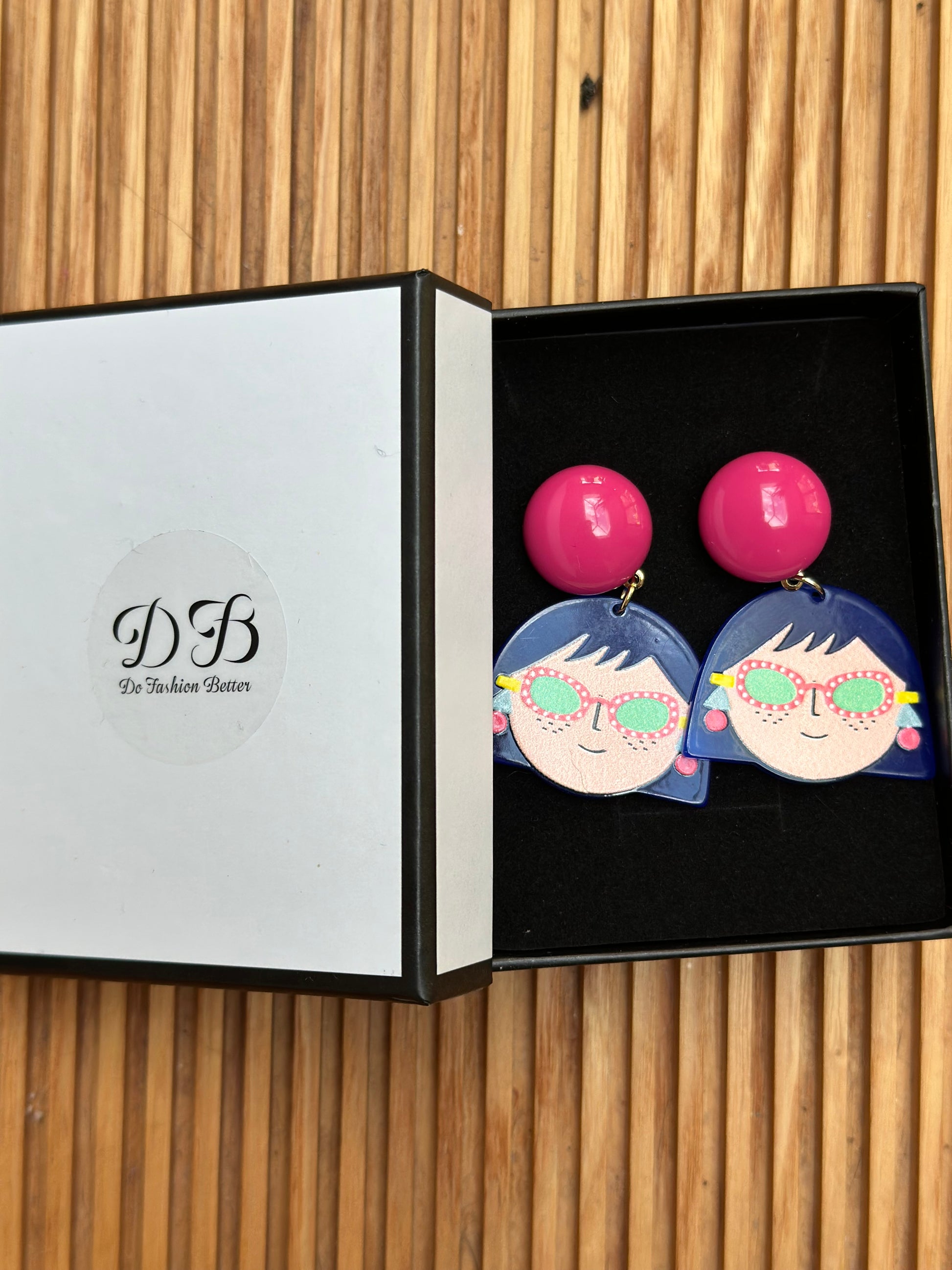Featuring a quirky illustrated girl design with bright colors and pink stud tops, these earrings instantly add personality to your look. Perfect for everyday styling, spring outfits or festivals.